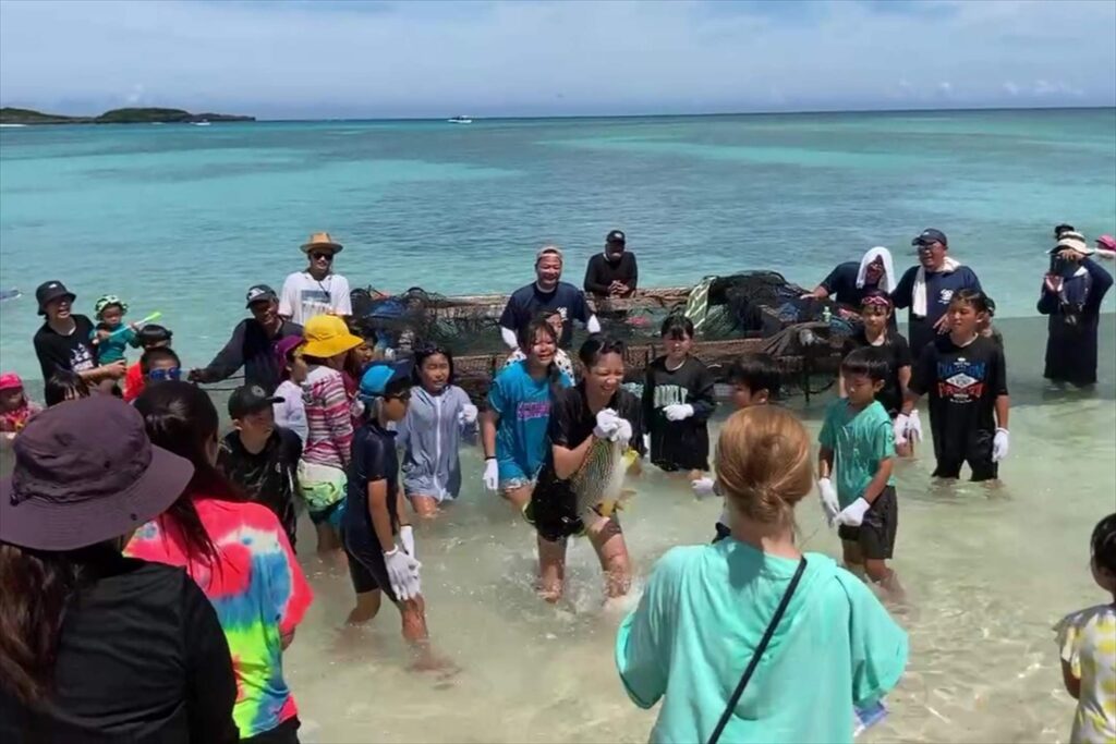 子供たちの魚つかみ取り大会、自称太公望が競いあう沖釣り大会、もずく早食い競争、