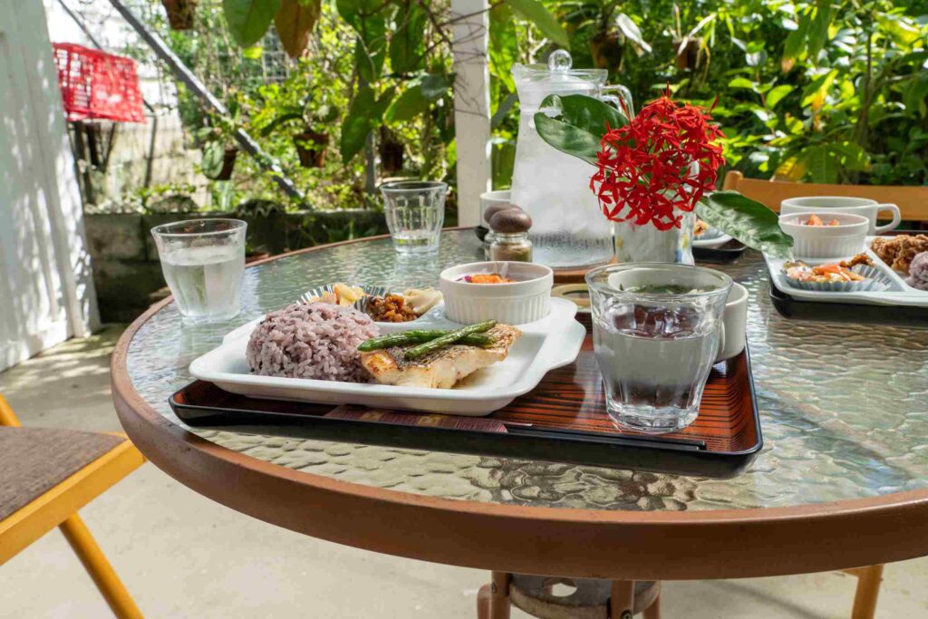 「はる」は沖縄の方言で畑、「畑まわり」という意味、自然に囲まれたカフェに気軽にぶらっと立ち寄ってみては。