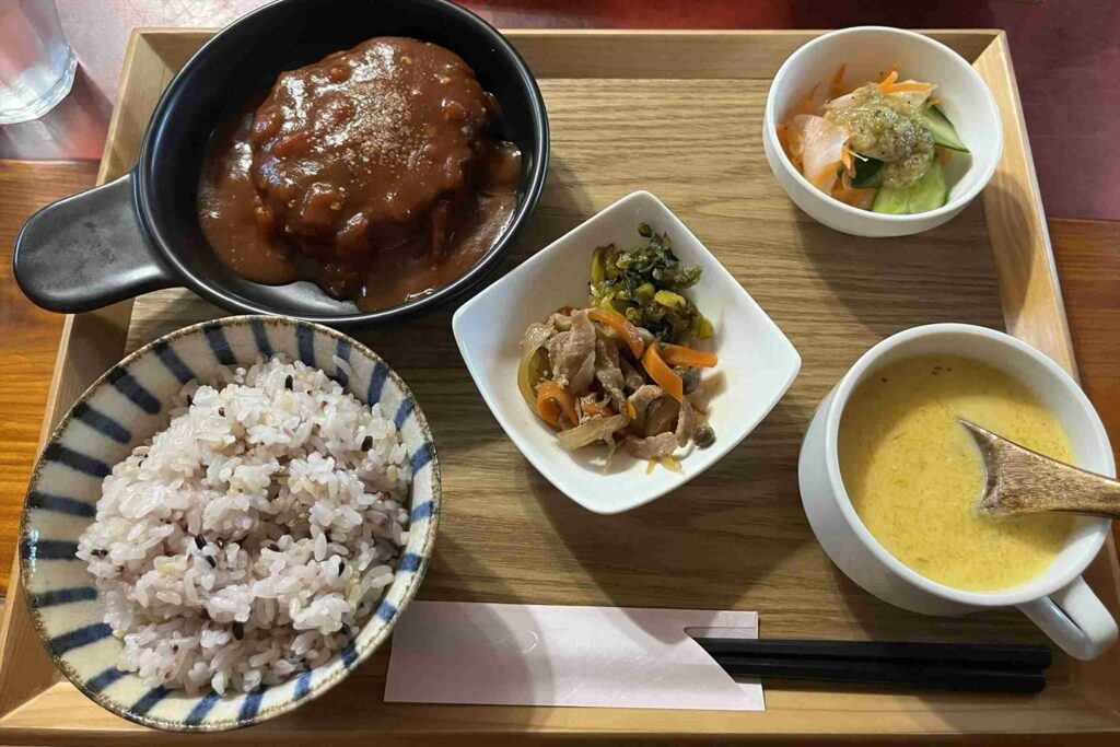 たまに1種類しかない日もありますが、ご容赦ください🙇 写真はハンバーグ