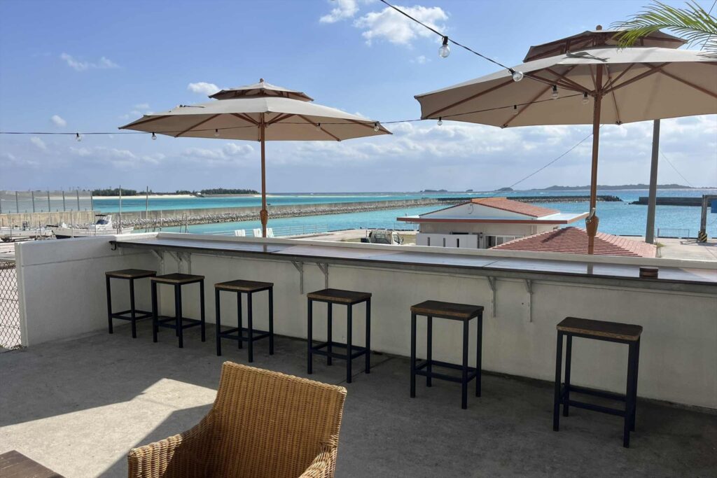 裏のテラスはオーシャンビューのイートインカフェスペースとなっていて、