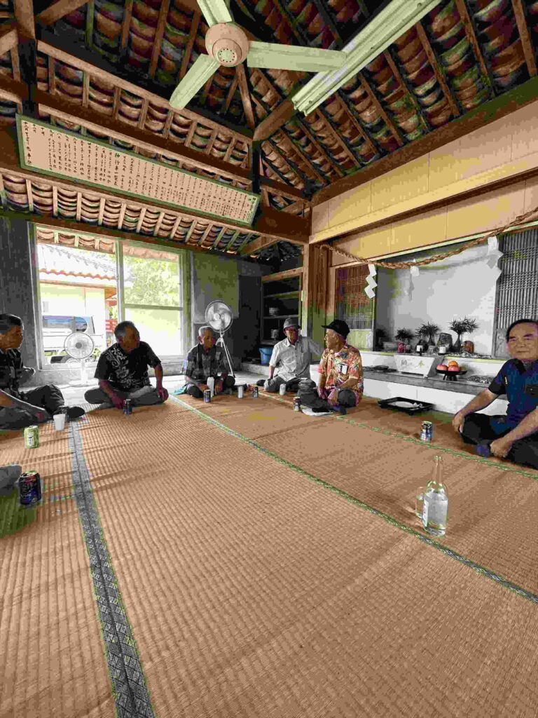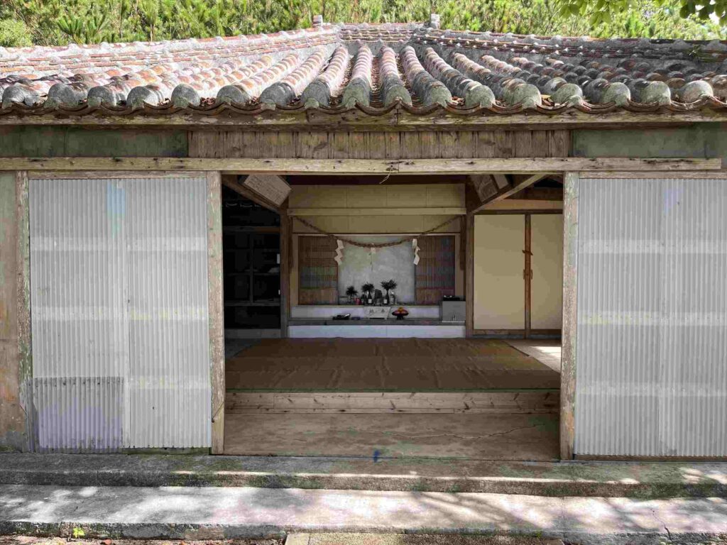 真ん中の建物はアシャギ、かつては毎月のようにあったと言われる祭事でノロが神を招き入れ祈りを捧げた館、