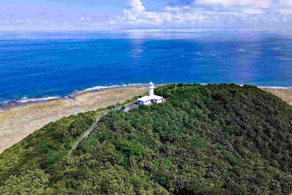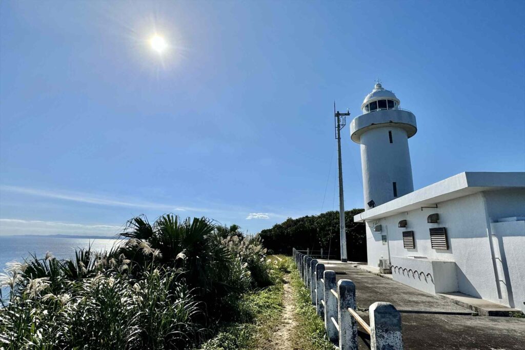 標高103mの山頂には灯台が立ち、晴れた日には沖縄本島差北端の大石林山から連なるやんばるの山々、