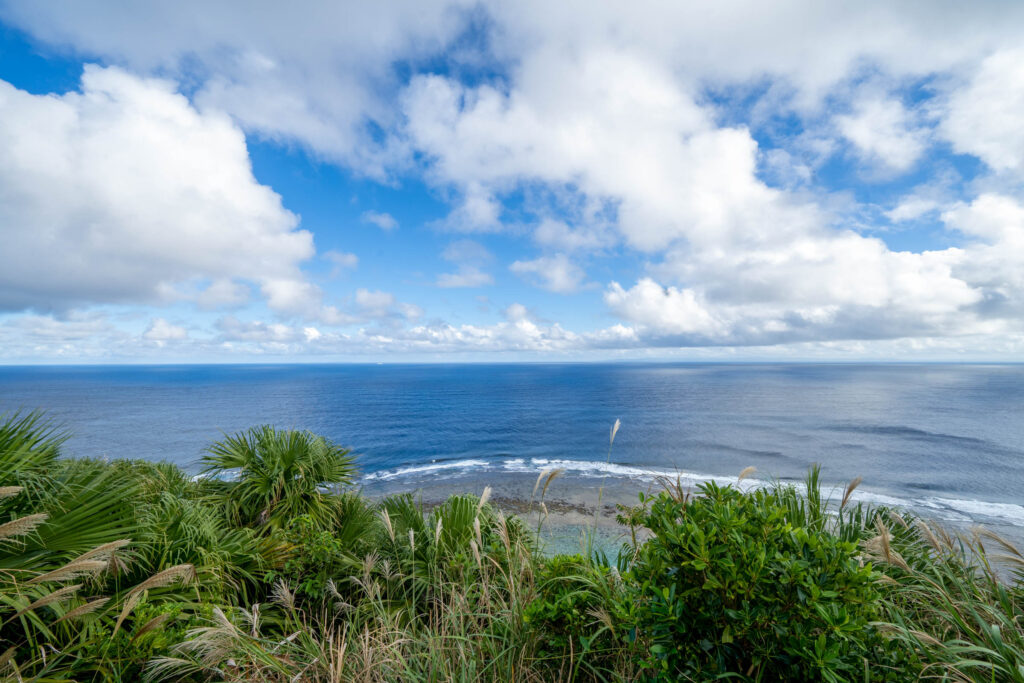 下り道の途中ではクマヤの断崖と東海岸が正面に見え、絶好のフォトスポットです。