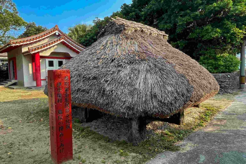 集落の中心にある殿内の神アシアゲを中心に、海人が海の安全や豊漁を祈る観音堂、島尻神社などが点在します。