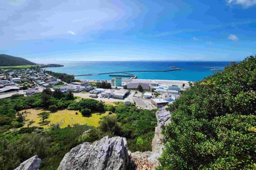 現在、岩の頂上は前泊集落と港を一望できる展望台となっていて、一帯は遊歩道が整備されているが、