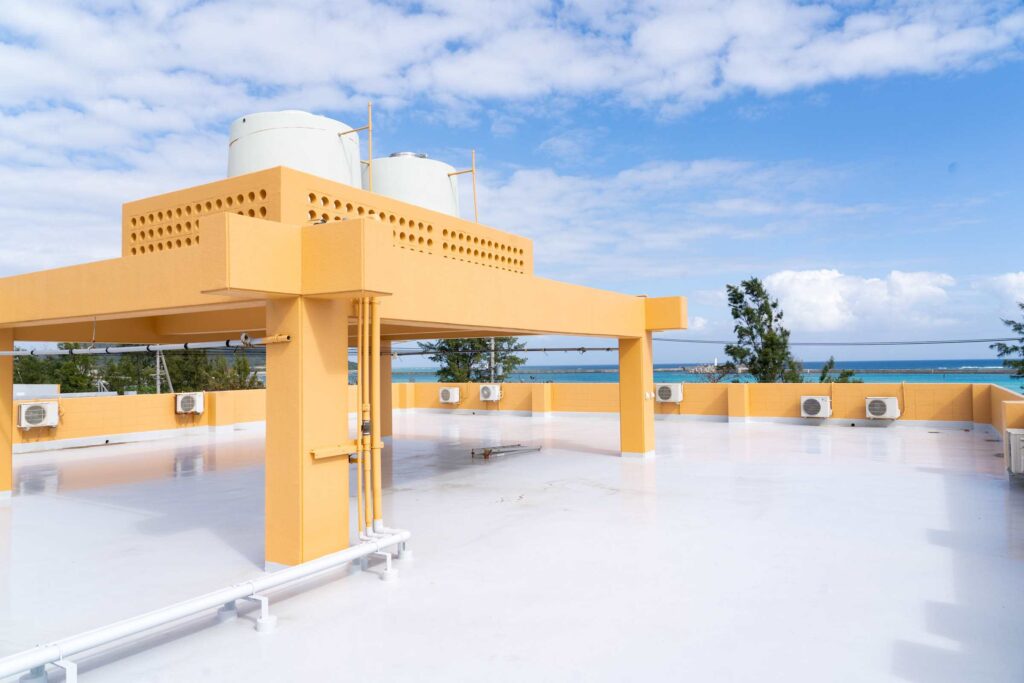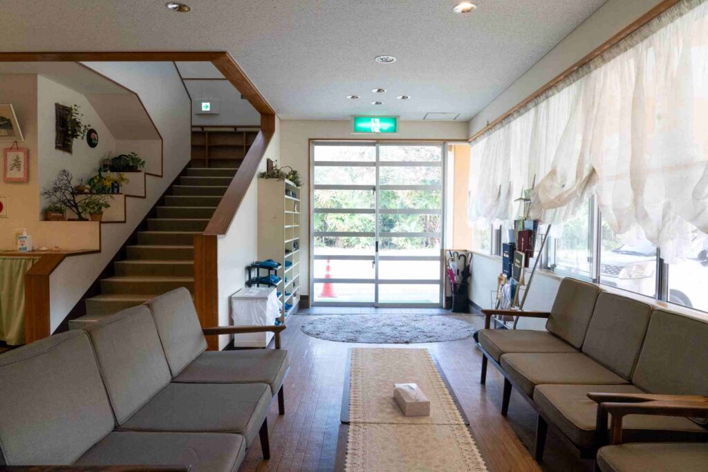 1階ロビーの他2階にも歓談場所があり屋上からは海や賀陽山が見渡せます。